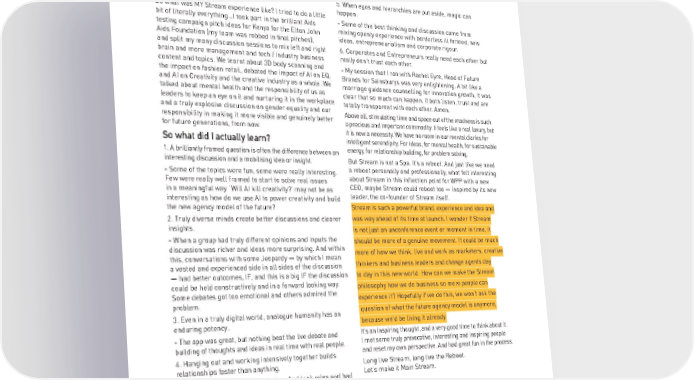 Big and Rich. 5. When egos and hierarchies are put aside, magic can So what was MY Stream experience like? I tried to do a little happen. bit of literally everything…I took part in the brilliant Aids - Some of the best thinking and discussion came from testing campaign pitch ideas for Kenya for the Elton John mixing openly experience with borderless ill formed, new Aids Foundation (my team was robbed in final pitches), ideas, entrepreneurialism and corporate rigour. and split my many discussion sessions to mix left and right 6. Corporates and Entrepreneurs really need each other but brain and more management and tech / industry business really don’t trust each other. content and topics. We learnt about 3D body scanning and - My session that I ran with Rachel Eyre, Head of Future the impact on fashion retail, debated the impact of AI on EQ, Brands for Sainsburys was very enlightening. A bit like a and AI on Creativity and the creative industry as a whole. We marriage guidance counselling for innovation growth, it was talked about mental health and the responsibility of us as clear that so much can happen, if both listen, trust and are leaders to keep an eye on it and nurturing it in the workplace totally transparent with each other. Amen. and a truly explosive discussion on gender equality and our Above all, stimulating time and space out of the madness is such responsibility in making it more visible and genuinely better a precious and important commodity. It feels like a real luxury, but for future generations, from now. it is now a necessity. We have no room in our mental diaries for So what did I actually learn? intelligent serendipity. For ideas, for mental health, for sustainable 1. A brilliantly framed question is often the difference between an energy, for relationship building, for problem solving. interesting discussion and a mobilising idea or insight. But Stream is not a Spa. It’s a reboot. And just like we need - Some of the topics were fun, some were really interesting. a reboot personally and professionally, what felt interesting Few were really well framed to start to solve real issues about Stream in this inflection point for WPP with a new in a meaningful way. ‘Will AI kill creativity?’ may not be as CEO, maybe Stream could reboot too — inspired by its new interesting as how do we use AI to power creativity and build leader, the co-founder of Stream itself. the new agency model of the future? Stream is such a powerful brand, experience and idea and 2. Truly diverse minds create better discussions and clearer was way ahead of its time at launch. I wonder if Stream insights. is not just an unconference event or moment in time, it - When a group had truly different opinions and inputs the should be more of a genuine movement. It could be much discussion was richer and ideas more surprising. And within more of how we think, live and work as marketers, creative this, conversations with some Jeopardy — by which I mean thinkers and business leaders and change agents day a vested and experienced side in all sides of the discussion — had better outcomes, IF, and this is a big IF the discussion to day in this new world. How can we make the Stream could be held constructively and in a forward looking way. philosophy how we do business so more people can Some debates got too emotional and others admired the experience it? Hopefully if we do this, we won’t ask the problem. 3. Even in a truly digital world, analogue humanity has an question of what the future agency model is anymore, enduring potency.. because we’d be living it already. - The app was great, but nothing beat the live debate and It’s an inspiring thought, and a very good time to think about it. building of thoughts and ideas in real time with real people. I met some truly provocative, interesting and inspiring people 4. Hanging out and working intensively together builds and reset my own perspective. And had great fun in the process. relationships faster than anything. Long live Stream, long live the Reboot. - Our pitch team bonded in minutes. And took roles and had Let’s make it Main Stream. a lot of fun and fresh ideas. We will stay in touch. 127