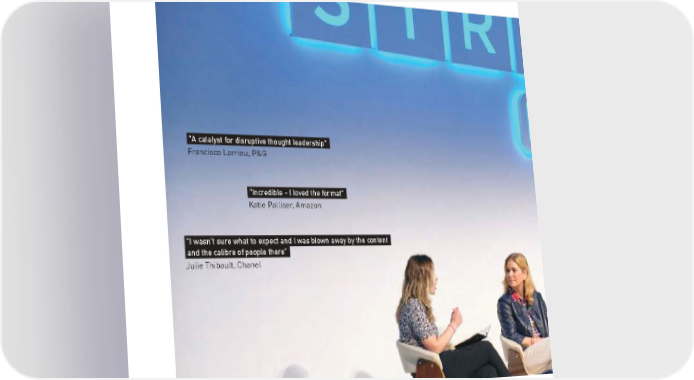 " A catalyst for disruptive thought leadership"- Francisco Larrieu, P&G "Incredible - I loved the format"- Katie Palliser, Amazon " I wasn’t sure what to expect and I was blown away by the content- and the calibre of people there"- Julie Thibault, Chanel 100