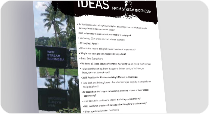 IDEAS FROM STREAM INDONESIA • Ad Verifications including Viewability is a passe topic now, so what are people talking about in measurements today? • God only needs to look once at your mobile to judge you! • Marketing. O2O, crowd sourced, shared economy • TV is dying! Agree? • What is the impact of digital media investment to your sales? • Why is marketing to kids responsibly important? • Bots. Bots Everywhere • We know all these about performance marketing but we ignore them anyway • Influencer Marketing: From Blogger, to Twitter-celeb, to YouTuber, to Instagrammer, to what-next? • 2019 Presidential Election and Why It Matters to Millennials • Data theft and Privacy Leaks - Are advertisers just as guilty as the platforms and publishers? • Is Blockchain the largest threat to Gig-economy players or their largest opportunity? • How does data continue to impact marketing and advertising? • Will machines create and manage advertising for a brand some day? • When speaking is cooler than touch • OUR INDUSTRY IS DYING! How to fix it? 67