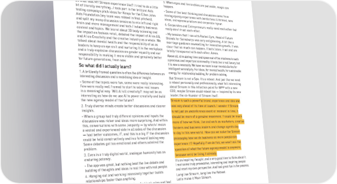 Big and Rich. 5. When egos and hierarchies are put aside, magic can So what was MY Stream experience like? I tried to do a little happen. bit of literally everything…I took part in the brilliant Aids - Some of the best thinking and discussion came from testing campaign pitch ideas for Kenya for the Elton John mixing openly experience with borderless ill formed, new Aids Foundation (my team was robbed in final pitches), ideas, entrepreneurialism and corporate rigour. and split my many discussion sessions to mix left and right 6. Corporates and Entrepreneurs really need each other but brain and more management and tech / industry business really don’t trust each other. content and topics. We learnt about 3D body scanning and - My session that I ran with Rachel Eyre, Head of Future the impact on fashion retail, debated the impact of AI on EQ, Brands for Sainsburys was very enlightening. A bit like a and AI on Creativity and the creative industry as a whole. We marriage guidance counselling for innovation growth, it was talked about mental health and the responsibility of us as clear that so much can happen, if both listen, trust and are leaders to keep an eye on it and nurturing it in the workplace totally transparent with each other. Amen. and a truly explosive discussion on gender equality and our Above all, stimulating time and space out of the madness is such responsibility in making it more visible and genuinely better a precious and important commodity. It feels like a real luxury, but for future generations, from now. it is now a necessity. We have no room in our mental diaries for So what did I actually learn? intelligent serendipity. For ideas, for mental health, for sustainable 1. A brilliantly framed question is often the difference between an energy, for relationship building, for problem solving. interesting discussion and a mobilising idea or insight. But Stream is not a Spa. It’s a reboot. And just like we need - Some of the topics were fun, some were really interesting. a reboot personally and professionally, what felt interesting Few were really well framed to start to solve real issues about Stream in this inflection point for WPP with a new in a meaningful way. ‘Will AI kill creativity?’ may not be as CEO, maybe Stream could reboot too — inspired by its new interesting as how do we use AI to power creativity and build leader, the co-founder of Stream itself. the new agency model of the future? Stream is such a powerful brand, experience and idea and 2. Truly diverse minds create better discussions and clearer was way ahead of its time at launch. I wonder if Stream insights. is not just an unconference event or moment in time, it - When a group had truly different opinions and inputs the should be more of a genuine movement. It could be much discussion was richer and ideas more surprising. And within more of how we think, live and work as marketers, creative this, conversations with some Jeopardy — by which I mean thinkers and business leaders and change agents day a vested and experienced side in all sides of the discussion — had better outcomes, IF, and this is a big IF the discussion to day in this new world. How can we make the Stream could be held constructively and in a forward looking way. philosophy how we do business so more people can Some debates got too emotional and others admired the experience it? Hopefully if we do this, we won’t ask the problem. 3. Even in a truly digital world, analogue humanity has an question of what the future agency model is anymore, enduring potency.. because we’d be living it already. - The app was great, but nothing beat the live debate and It’s an inspiring thought, and a very good time to think about it. building of thoughts and ideas in real time with real people. I met some truly provocative, interesting and inspiring people 4. Hanging out and working intensively together builds and reset my own perspective. And had great fun in the process. relationships faster than anything. Long live Stream, long live the Reboot. - Our pitch team bonded in minutes. And took roles and had Let’s make it Main Stream. a lot of fun and fresh ideas. We will stay in touch. 127