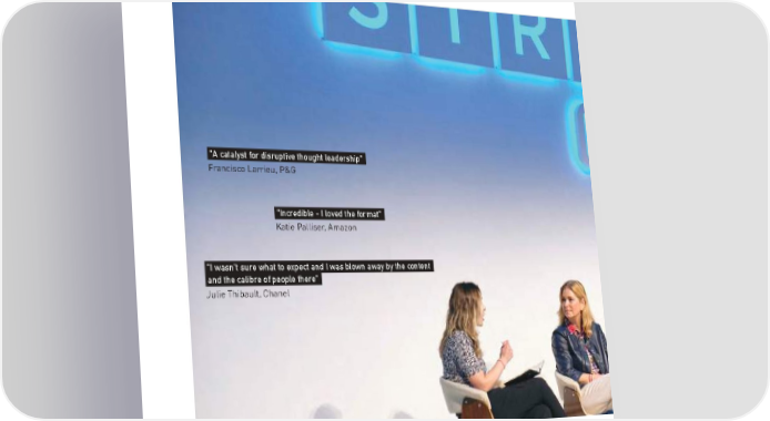 " A catalyst for disruptive thought leadership"- Francisco Larrieu, P&G "Incredible - I loved the format"- Katie Palliser, Amazon " I wasn’t sure what to expect and I was blown away by the content- and the calibre of people there"- Julie Thibault, Chanel 100